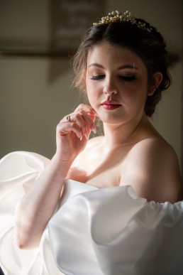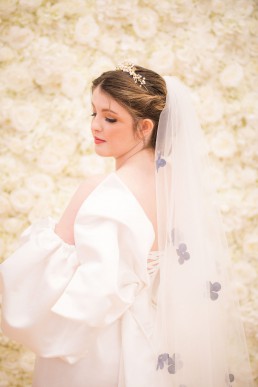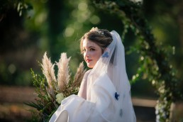 Abigail’s hair & fresh faced make-up was done by lovely cruelty free MUA, Nicola Whitfield and she had a bespoke gown for Yorkshire designer, Danielle Sykes. Flox Bridal provided the finishing touches with a tiara & hair vine, whilst Amber from Mini Quinni Alternative Weddings provided beautifully designed, bespoke veils.