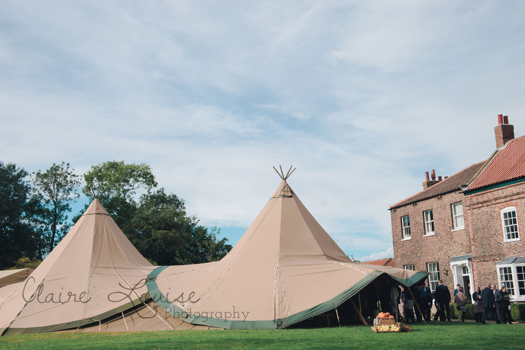 The ceremony was held at a beautiful little church in Bolton Percy in North Yorkshire, and afterwards the guests made their way to the Tipi reception in the grounds of Hornington Mannor, a Grade II listed manor house, which made the perfect backdrop for some beautiful photos.